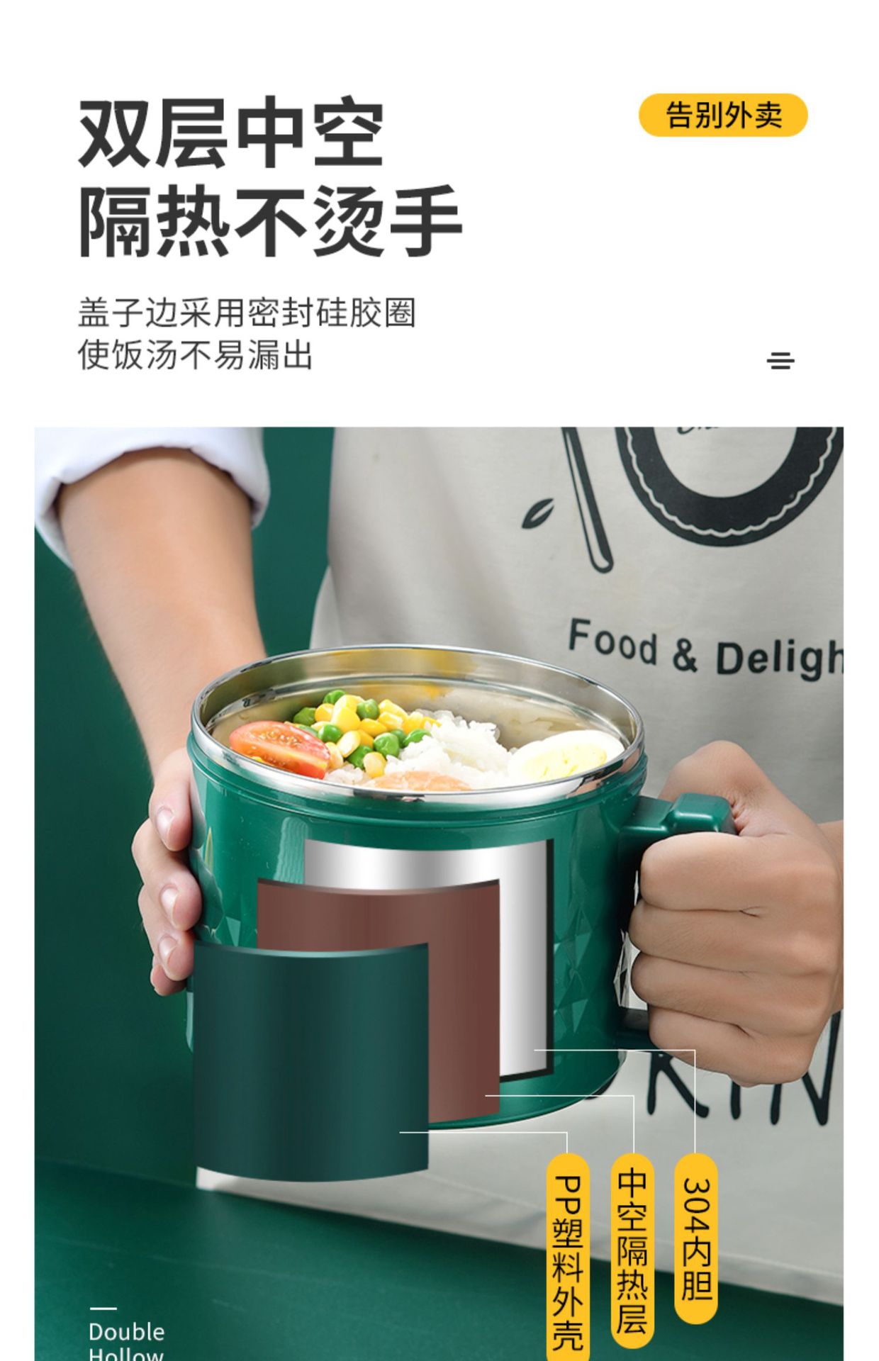 Aohong Stainless Steel Lunch Box Canteen Rice Pot Office Workers Convenient To Carry College Students Lunch Box Thermal Insulation Fast Food Cup